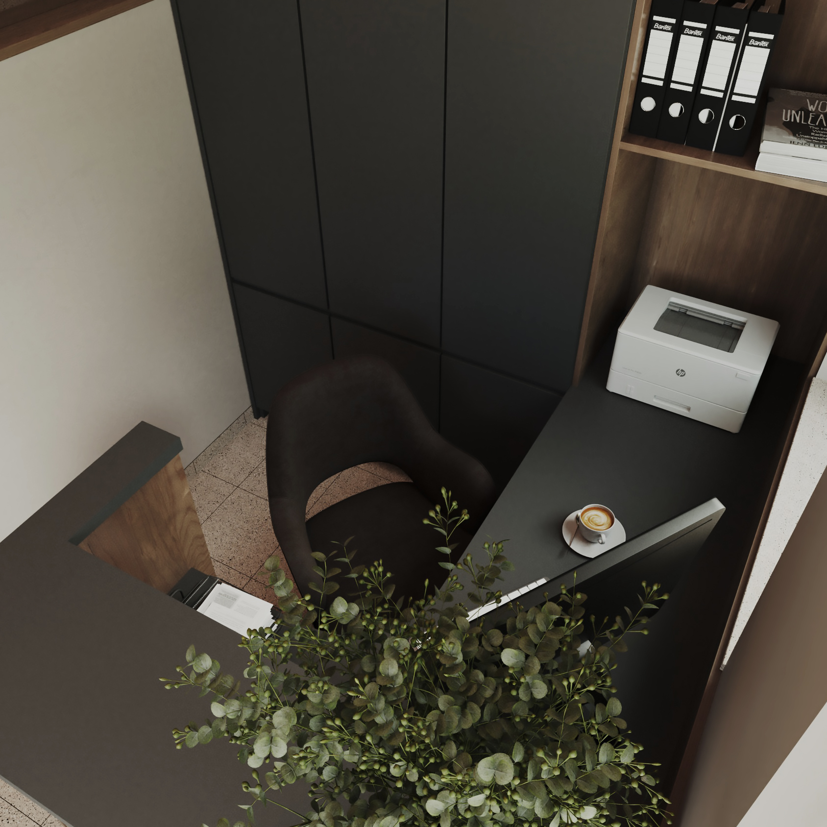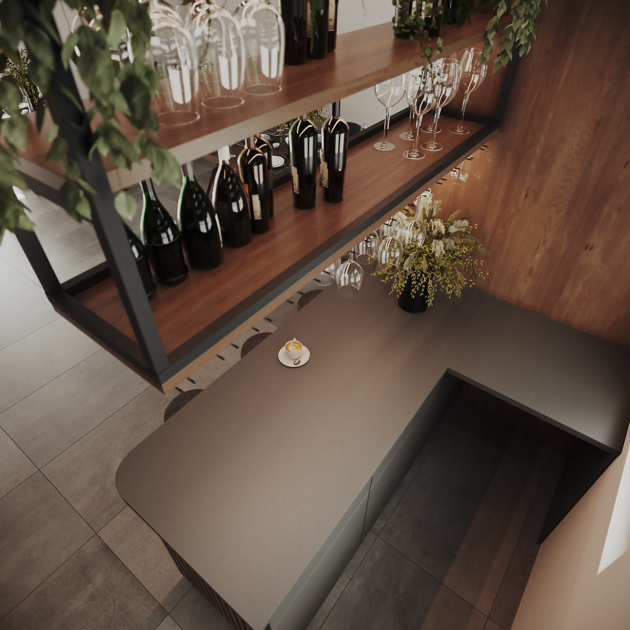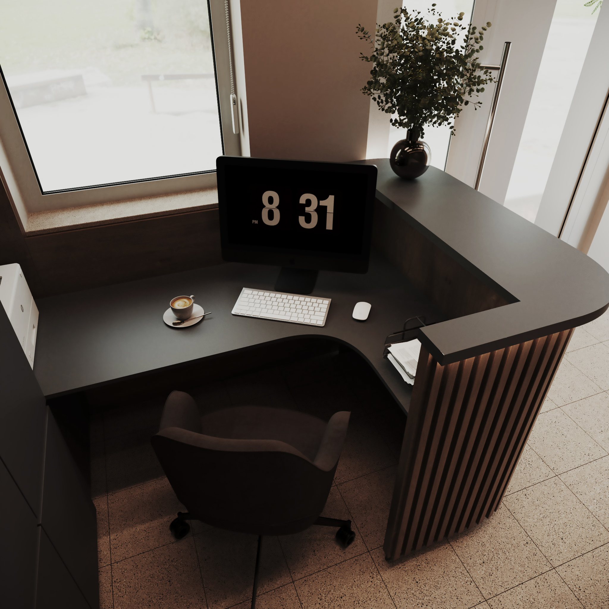 The reception area now feels calm and welcoming, with warm wood tones and smooth, curved lines. Behind the bar, open shelving, glassware, and greenery create a balanced mix of function and style. Fluted textures add depth without being overwhelming. Every part of the space was designed to feel easy, natural, and comfortable—for both staff and guests. It's a place meant to be enjoyed, not rushed.